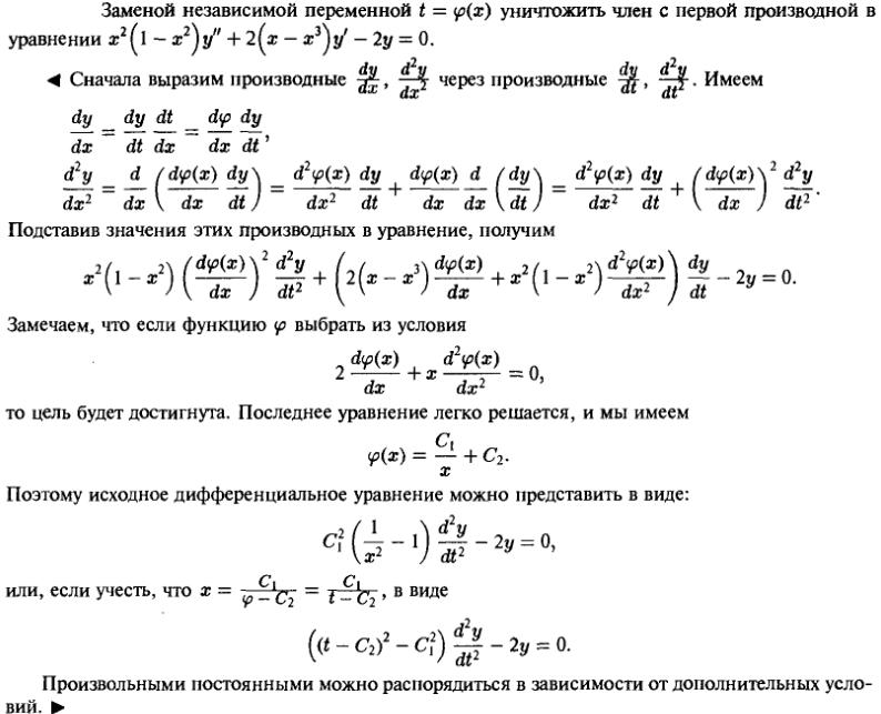 и подставляем в дифференциальное уравнение. После группировки подобных слагаемых получим линейное уравнение