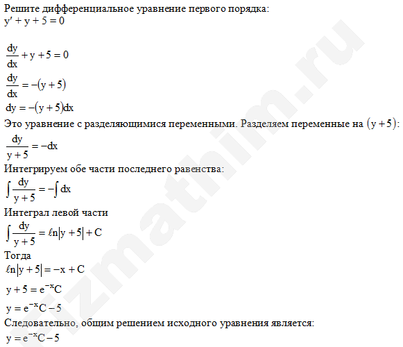 Пример 1. Решить дифференциальное уравнение
