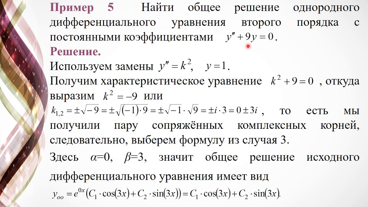 Схема вычислений Вам известна, поэтому переходим к рассмотрению однородного дифференциального уравнения