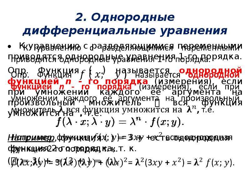 и повторным интегрированием находим общий вид однородной функции