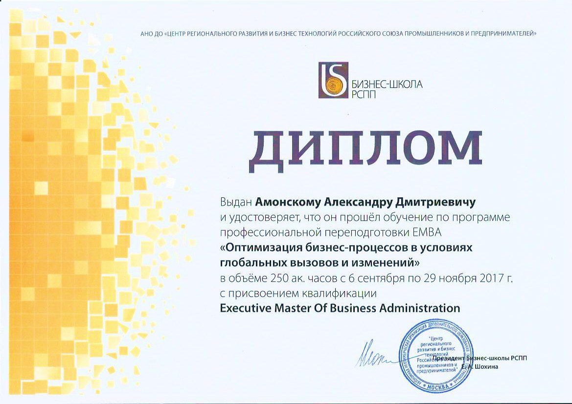 Диплом EMBA