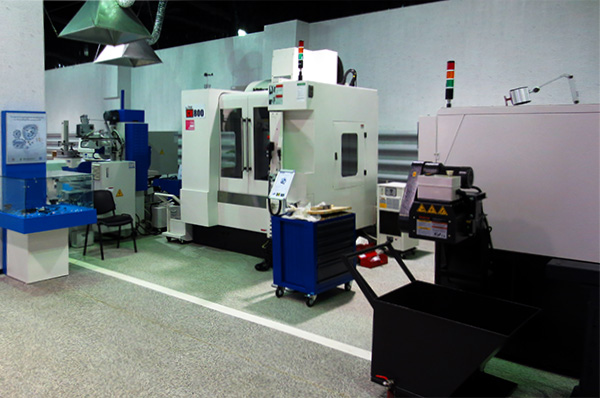 Учебное место состоит из ПК и пульта управления станком. Будущие специалисты обучаются тонкости работы с программным обеспечением, осваивают процесс работы станка при помощи учебных стендов, а потом отрабатывают свои навыки на полноценном станке.