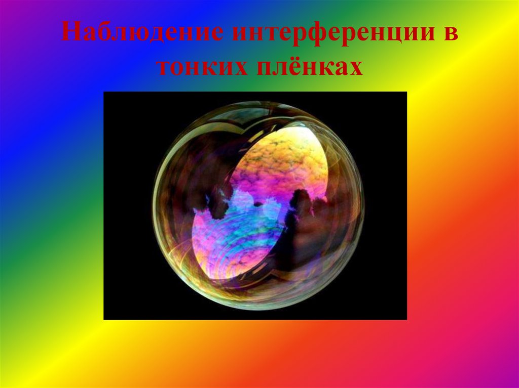 При соприкосновении двух стеклянных пластин в отраженном свете можно наблюдать образование разноцветных полос. Это явление связано с