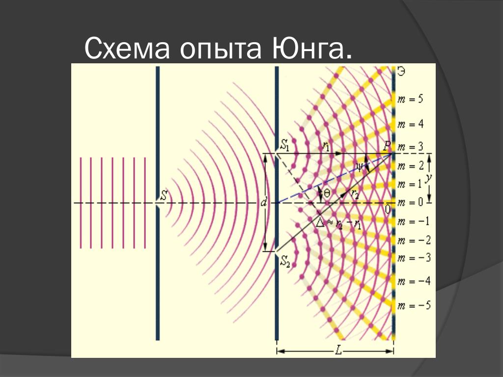 Свет, исходящий из нижней щели, должен проходить намного дальше, чем свет из верхней щели, поэтому для прохождения большего расстояния потребуется больше длин волн.Если мы выберем другую точку на стене, то снова получим разное количество длин волн для каждого пути, который проходит свет от щели до стены. Суть в том, чтобы сравнить количество длин волн, которое требуется каждой световой волне, чтобы пройти от щели до стены. Для конструктивной интерференции разница длин волн будет составлять целое число целых длин волн. Для деструктивной интерференции это будет целое число целых длин волн плюс половина длины волны.