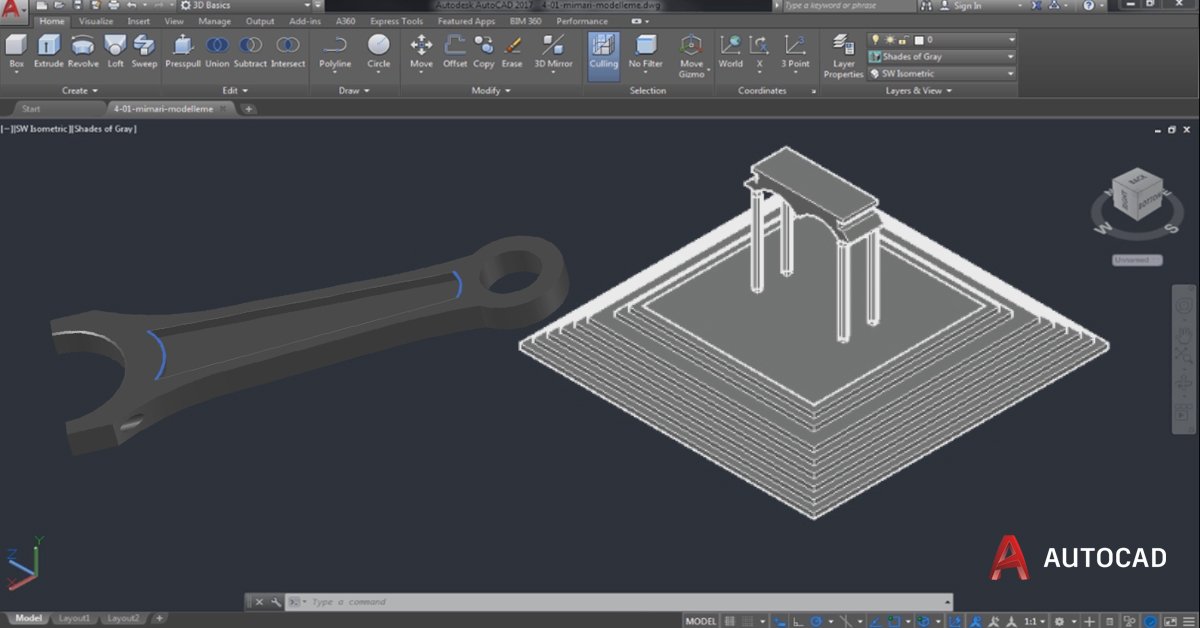 3д-моделирование здесь также приятный максимально автоматизированный процесс. Выполняя 3д-моделирование объекта, безусловно по заданным значениям, после можно получить его плоские проекции. Это очень классно. Мы имеем и объемную наглядную 3д модель и весь набор плоских чертежей. И Автокад справляется с этой задачей абсолютно.