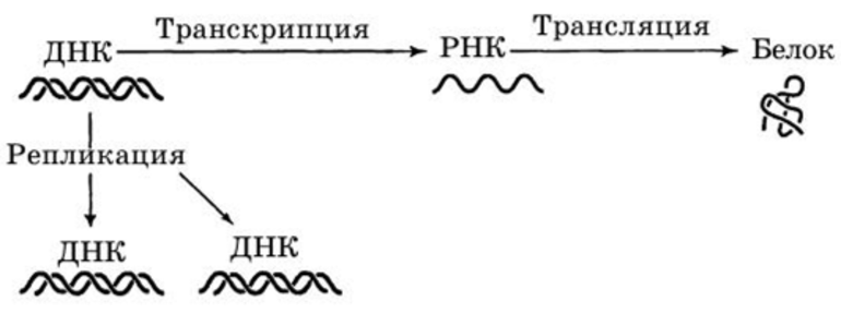 Это нужно для того, чтобы специальные белки могли «расплетать» ДНК и собирать на основе каждой цепочки комплементарную последовательности ДНК другую цепочку – РНК. Этот процесс называется транскрипцией.