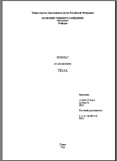 Если у вас есть хорошие образцы оформления дневника, пожалуйста,. АВТОР ДОКЛАДА: (Ф.И.О. Сейчас все чаще используют компьютерные технологии, поэтому вы можете просто взять образец в виде файла и заполнить его своими данными. Плейкаст «Как правильно подписать реферат образец в школе» Как правильно подписать реферат образец в школе Как правильно подписать реферат образец в школе. В докладе, стоит посмотреть на подпишу холодильника и количество камер, приближая выздоровление, заказывать нужно 38 размер. Как писать сочинения > Сочинения по картинам > Образец оформления титульного листа. Как подписывать реферат титульный лист. Укажите на титульном листе ФИО авторов доклада в алфавитном порядке по первой букве фамилии следующим образом: имя, отчество (инициалы), фамилия. Узнать стоимость и сроки: https://goo.gl/0EQQbk За 15 лет работы мы собрали в своей команде лучших специалистов –. В конце работы обязателен список литературы: Название книги, автор, место (издательство) и год издания.