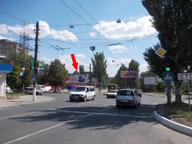 Остановка Майский рынок на карте Донецка с обеих сторон направления движения.