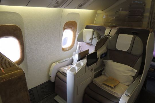 В задней части есть ряд сидений, которые состоят из двух групп, что делает его идеальным для пар, путешествующих вместе. Тем не менее, расположение кресел не имело большого значения на этом конкретном рейсе, поскольку слова «посадка завершена» были объявлены, когда самолет был заполнен только на 20–30%. Действительно, глядя на заднюю часть этого 777-го, я мог видеть только двух или трех человек.