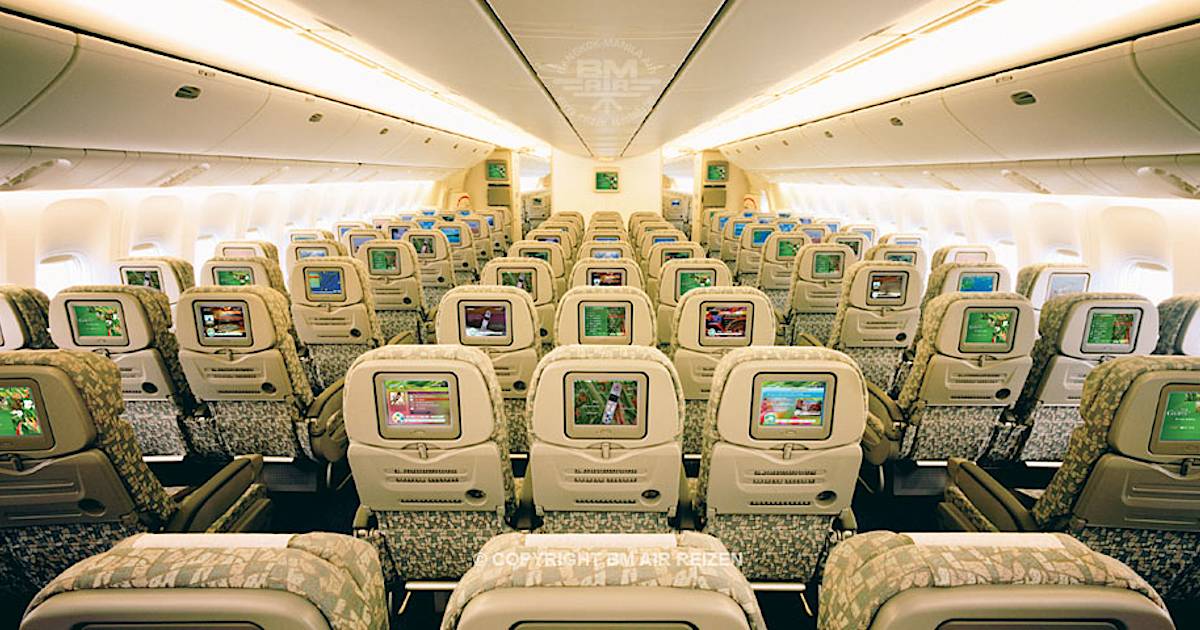 Спинки кресел на борту Boeing 777 оснащены мониторами с диагональю 8,9 дюймов мультимедийной развлекательной системы Thales.
