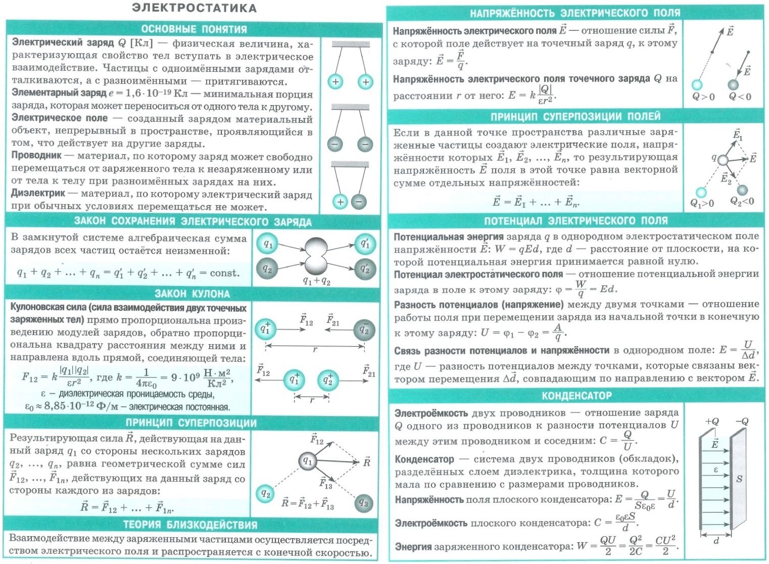 | Закон Кулона | Q1 и Q2 ― точечные заряды, ε0 = 8,85∙10−12 Ф/м ― электрическая постоянная, ε ― диэлектрическая проницаемость среды, r ― расстояние между зарядами | |