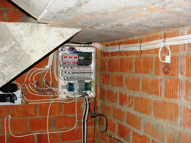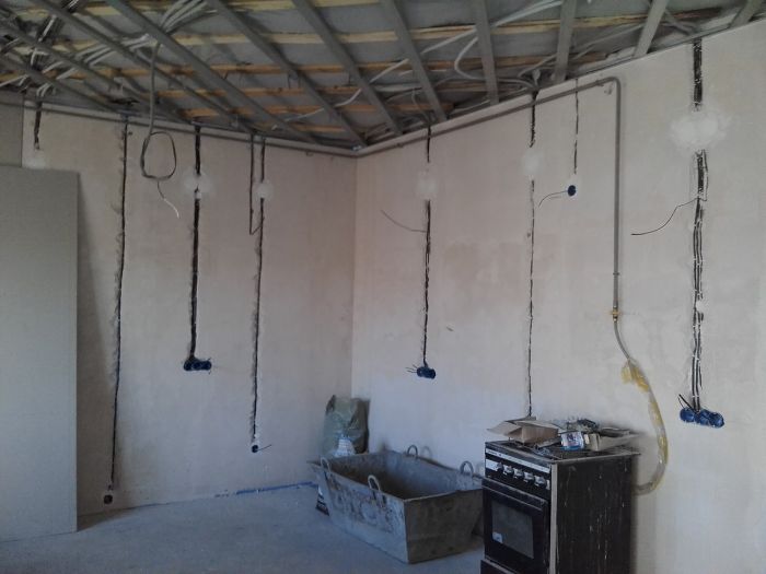 - Непосредственное выполнение электромонтажа (штробление, разводку проводки, монтаж и подключение защитного, распределительного оборудования, приборов учета электроэнергии, установку силового, климатического, отопительного, насосного, вентиляционного оборудования, розеток, выключателей, светильников, монтаж слаботочных систем: видеонаблюдения, сигнализации, линии интернет, СКУД, кабельного телевидения, системы умный дом и пр.