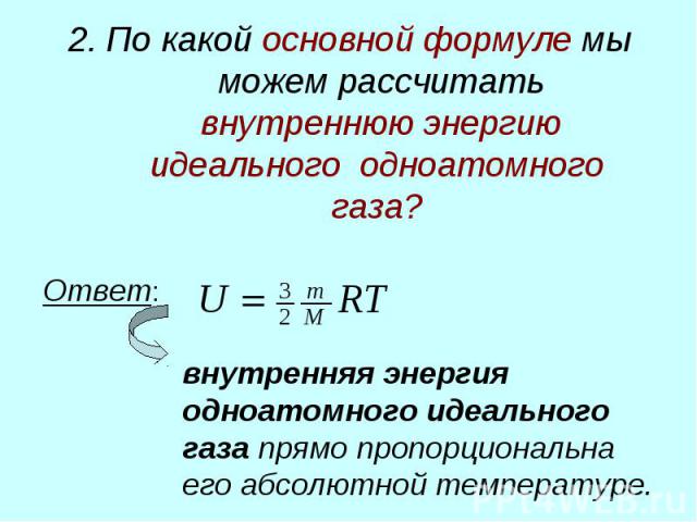 Формула расчета внутренней энергии идеального газа. Изменение внутренней энергии газа: формула расчета