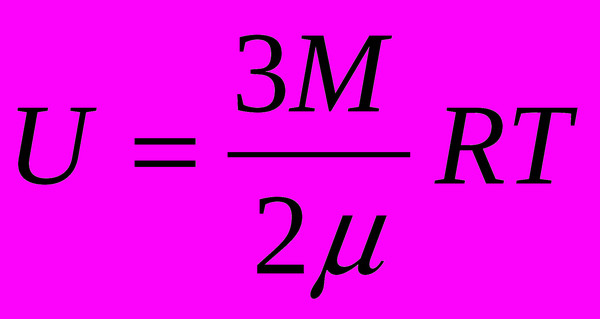 Под строением частицы газа (молекулы) имеется в виду количество атомов, которое ее составляет. Оно играет определяющую роль при подстановке соответствующей степени свободы z в формулу для U. Если газ является одноатомным, формула внутренней энергии газа принимает такой вид: