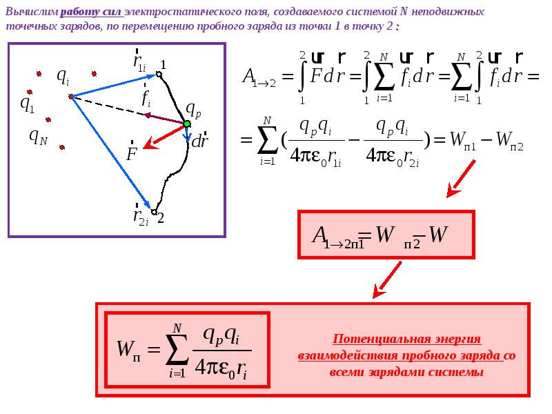 где — потенциал в точке, где находится заряд , создаваемый всеми остальными зарядами, кроме .
