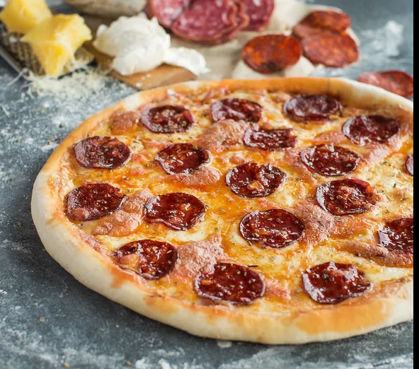Томатный соус, колбаски Пепперони, сыр 30см/490г.