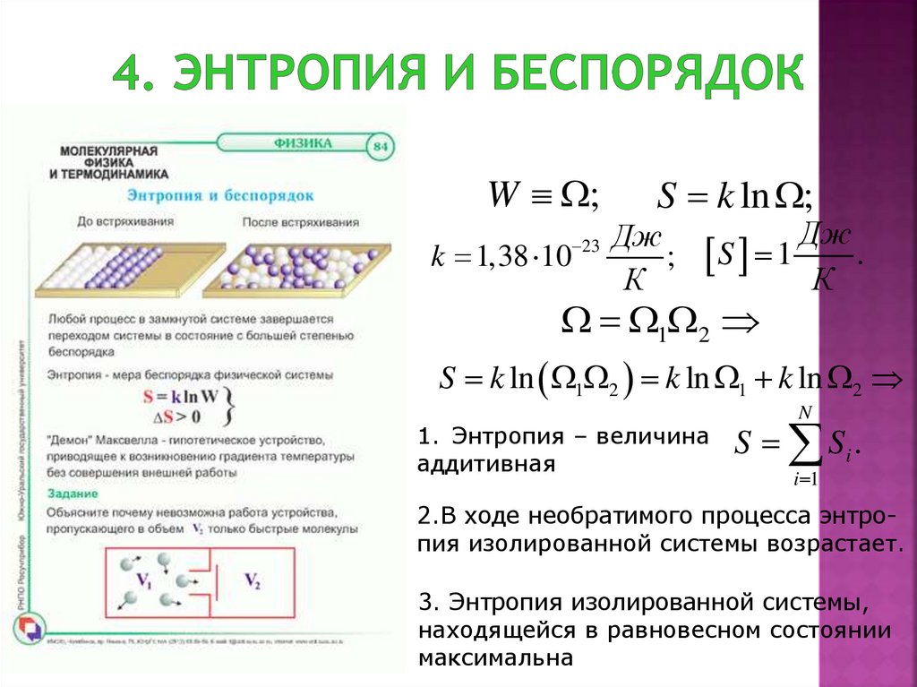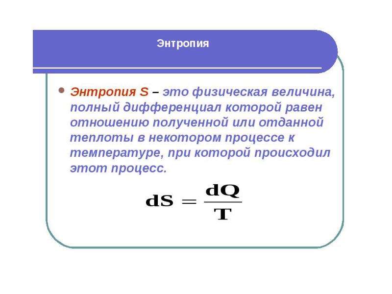 - Энтропия – это мера неупорядоченности системы.