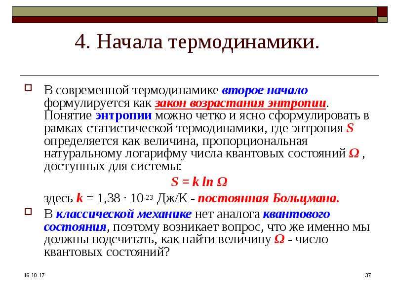 - Формула (10) означает, что энтропия определена натуральным логарифмом количества микросостояний, которые реализуют рассматриваемое макросостояние.