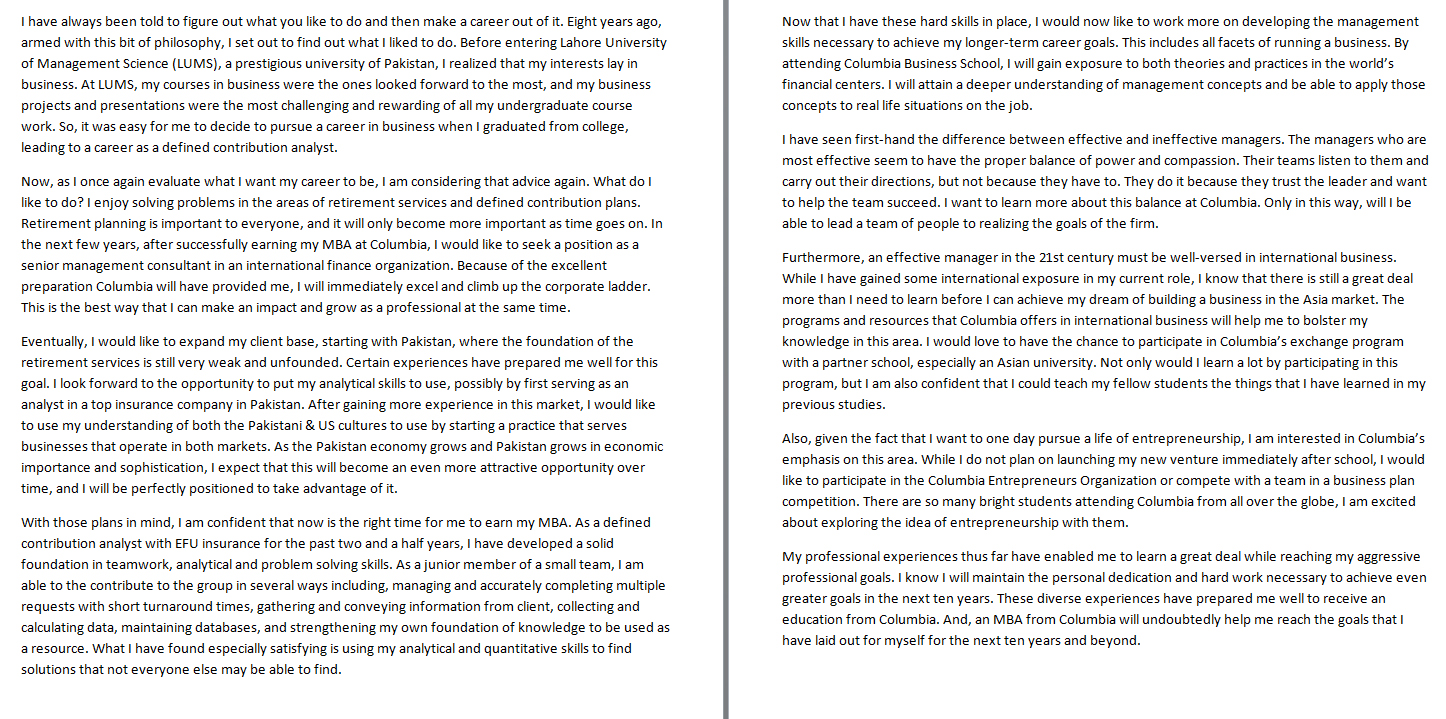 - Эссе на 1-2 страницы, в котором излагаются причины подачи заявки на участие в программе и карьерные цели заявителя.