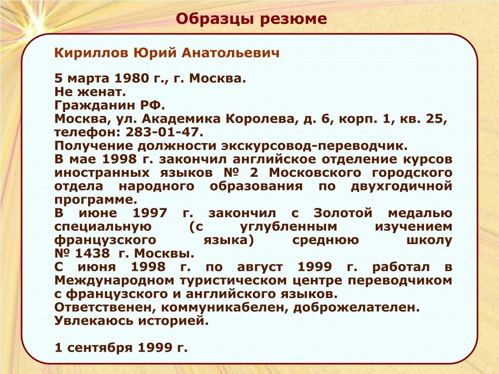 И, естественно, не стоит врать, информация должна быть достоверной. Лучше описать свои реальные качества и навыки, чем пытаться выделиться при помощи придуманных.