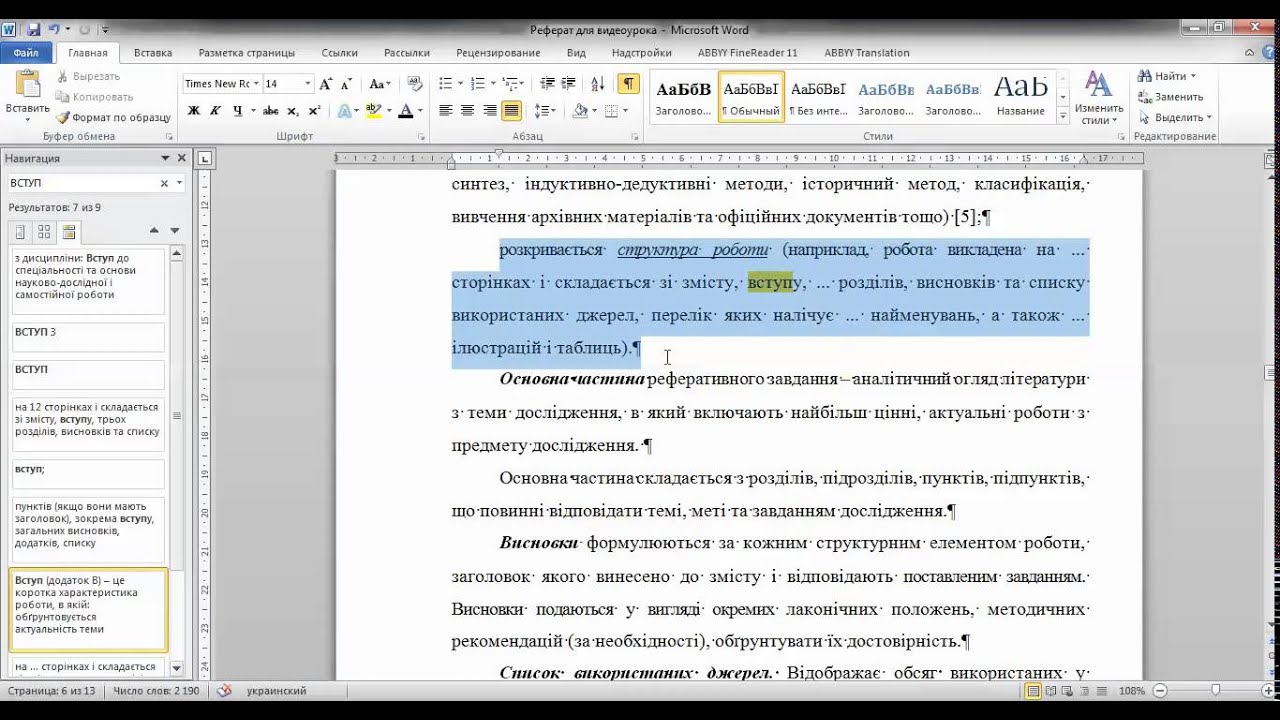 Требования к реферату
