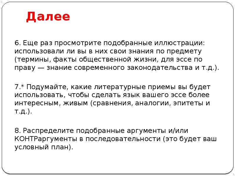 4. Для грамотного составления эссе, в нём должны быть убедительные аргументы, касающиеся той или иной проблемы.