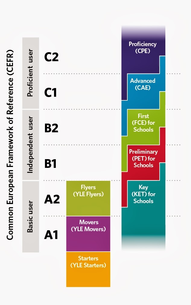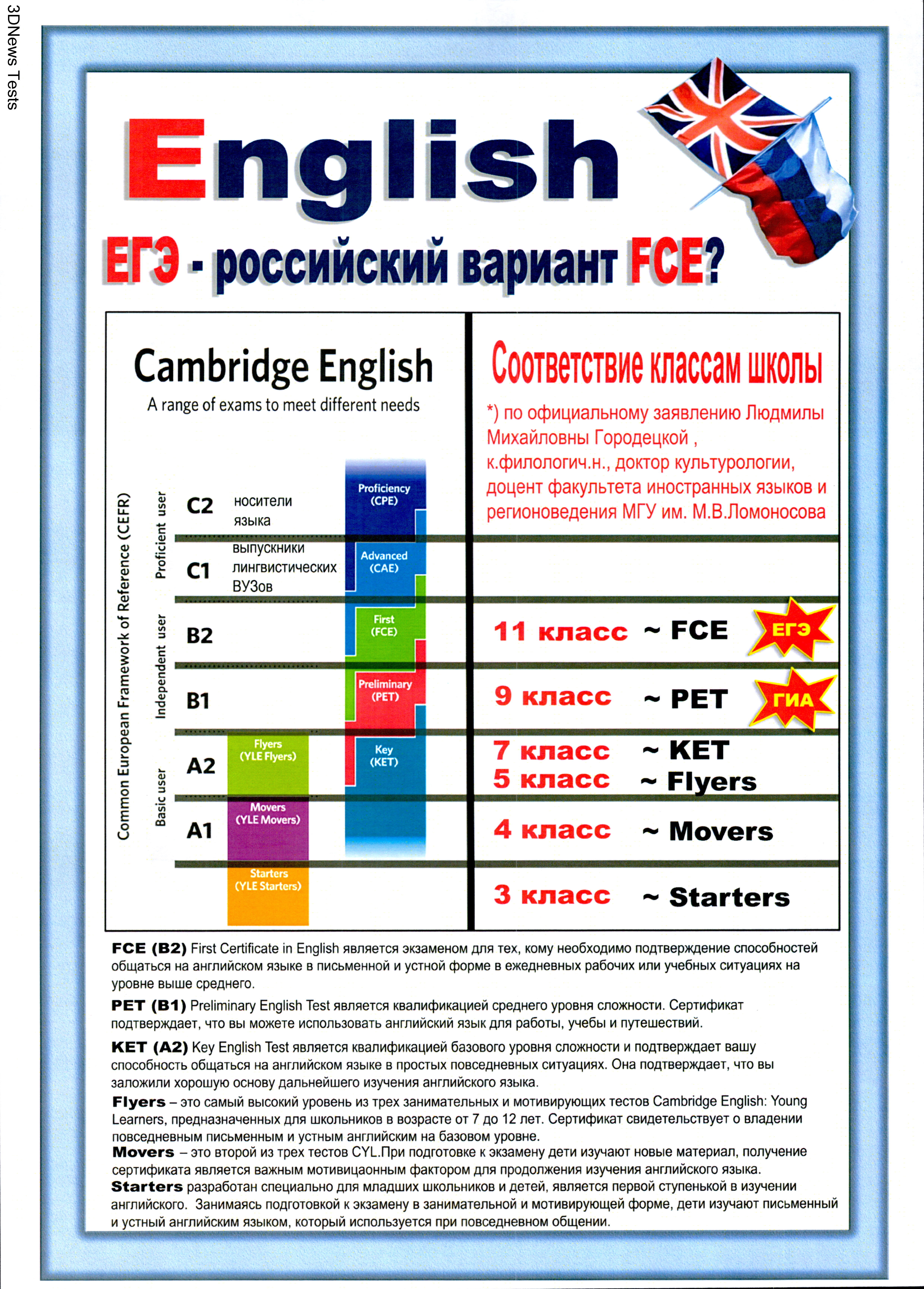 - B2 First for Schools (FCE for Schools) – тестирование, также ориентированное на B2, но с адаптированным для школьников материалом;