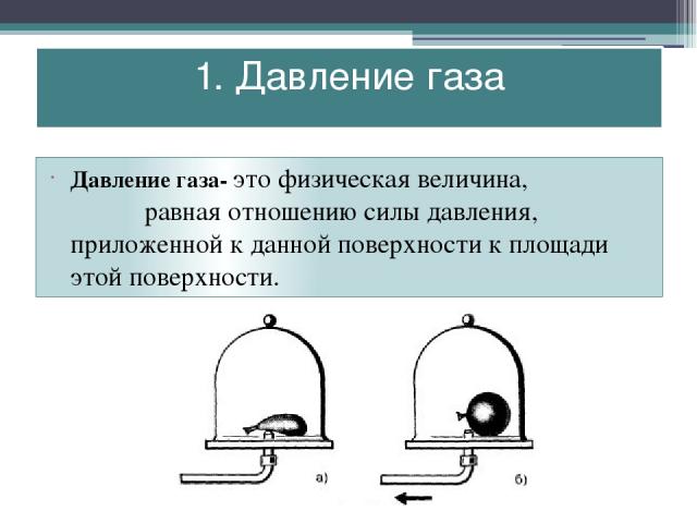 1. Давление газа есть результат ударов частиц о стенки сосуда, в котором он находится.