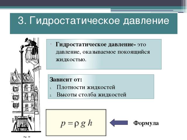 давление, существующее в любом месте тела жидкости из-за веса жидкости над ним.