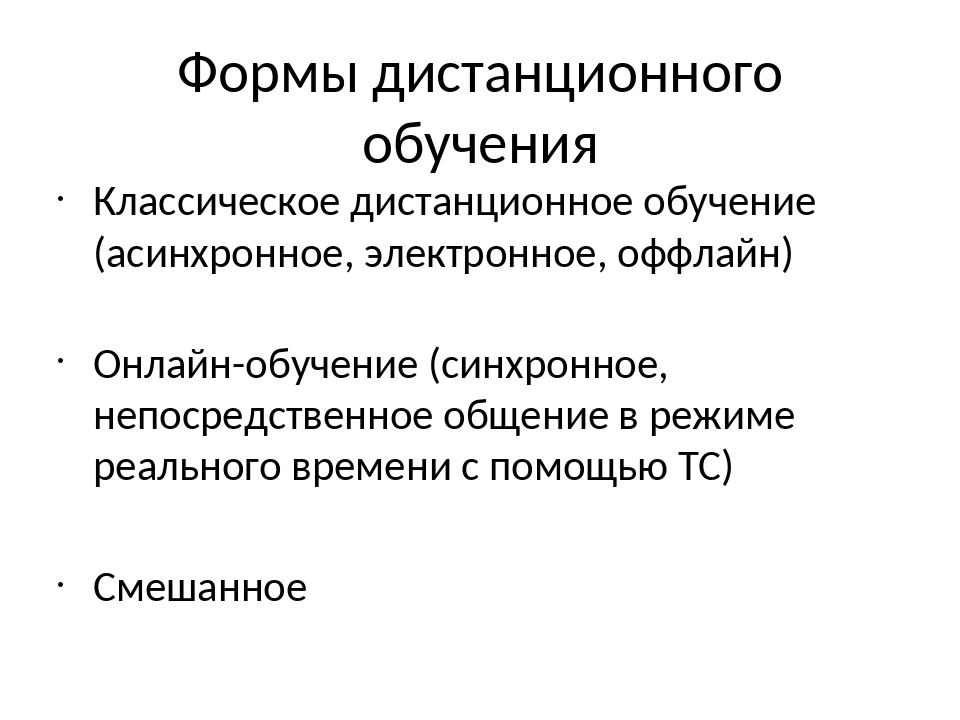 В последнее время выделяют также дистанционную форму, которая по сути является заочной формой обучения с применением дистанционных технологий.
