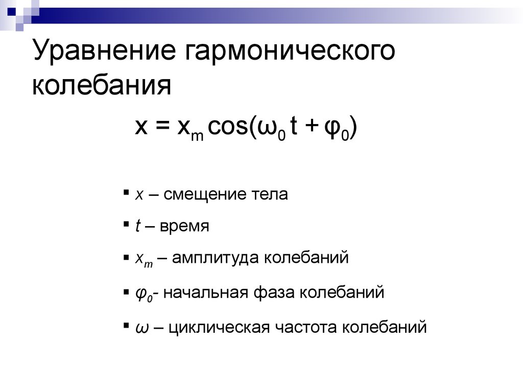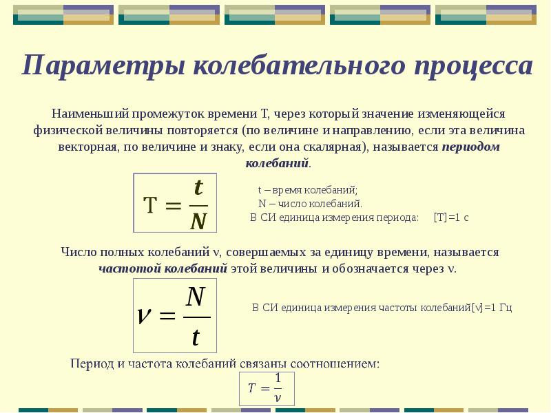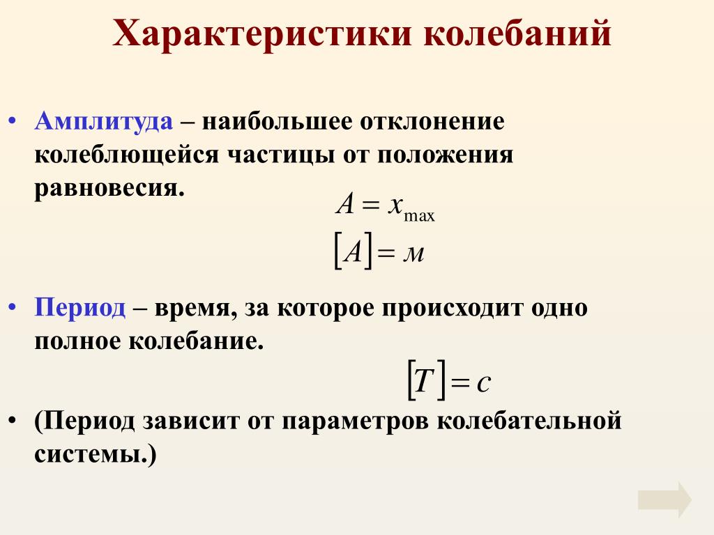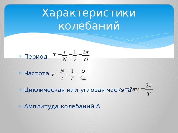 Любые колебания характеризуются следующими параметрами: