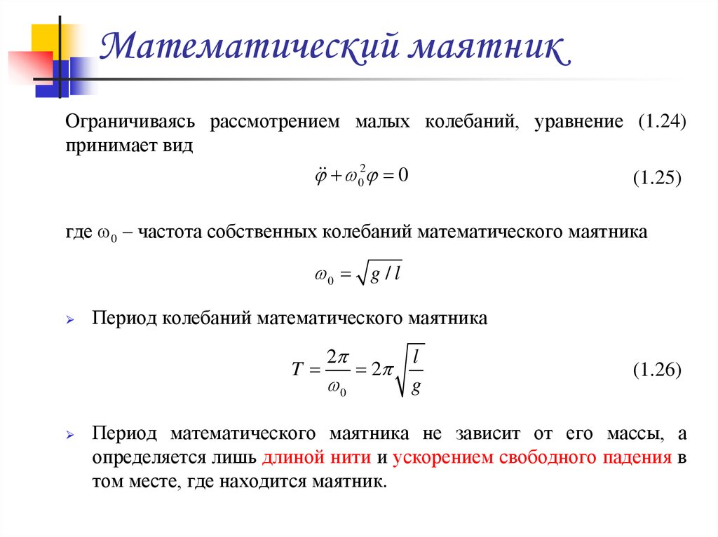 где l– длина нити, g – ускорение свободного падения. С ростом амплитуды