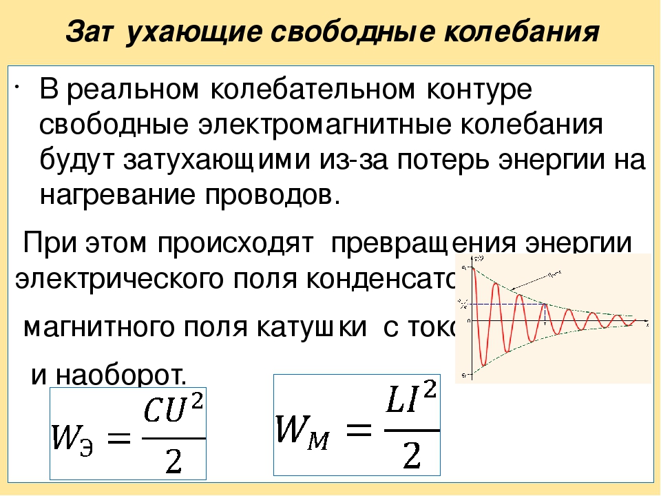 При свободных колебаниях в реальных системах всегда происходят потери энергии. Механическая энергия расходуется, например, на совершение работы по преодолению сил сопротивления воздуха. Под влиянием силы трения происходит уменьшение амплитуды колебаний, и через некоторое время колебания прекращаются.