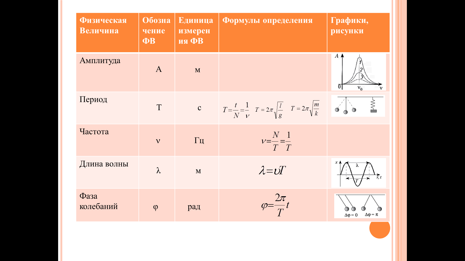 Частота колебаний (v) – число полных колебаний за единицу времени. В СИ измеряется в герцах (Гц).