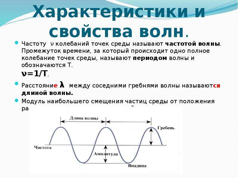 Скорость = Длина волны • ЧастотаПриведенное выше уравнение известно как волновое уравнение.Он устанавливает математическое соотношение между скоростью ( v ) волны и ее длиной (λ) и частотой ( f ). Используя символы v , λ и f , уравнение можно переписать как
