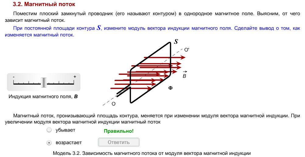 2. Как вы думаете, как может измениться магнитный поток, если взять замкнутый контур, который расположен под некоторым углом к линиям магнитной индукции и его площадь уменьшить в два раза, а модуль вектора увеличить в четыре раза?