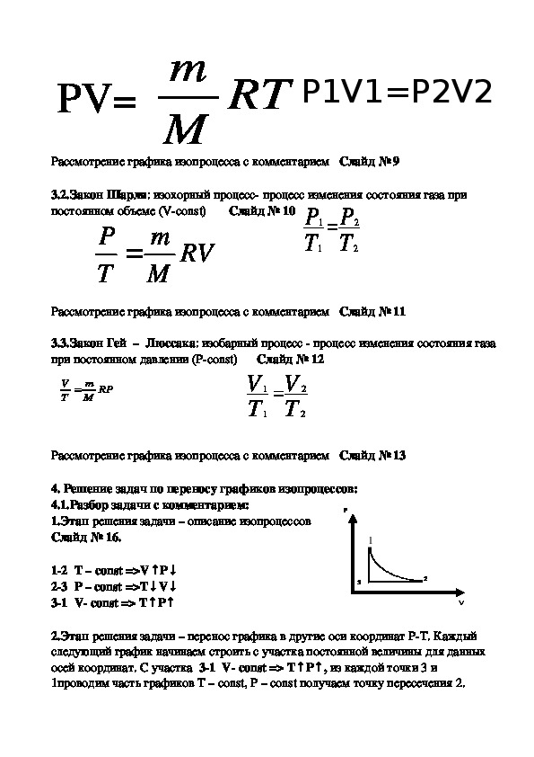 Из уравнения Клапейрона (см. предыдущий параграф) следует, что в процессах, происходящих с данной массой газа, произведение давления газа p на его объем V, деленное на абсолютную температуру T газа, постоянно: (pV)/T = const.