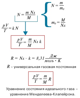 Отсюда следует, что значение выражения (pV)/T для данной массы газа пропорционально только числу молекул: