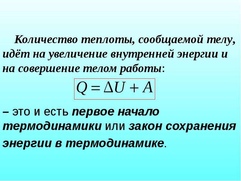 Первое начало (первый закон) термодинамики — это закон сохранения и превращения энергии для термодинамической системы.