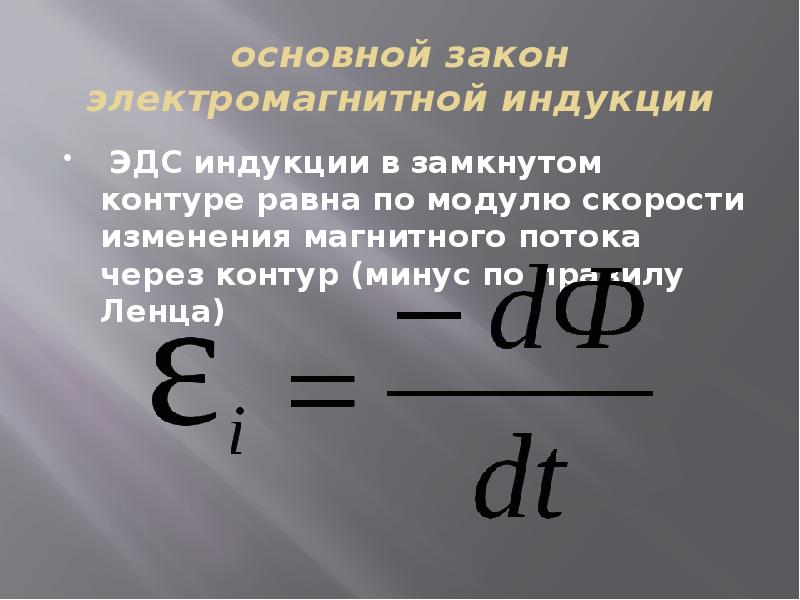 ЭДС индукции контура (E i ) | равна скорости изменения потока магнитной | |||