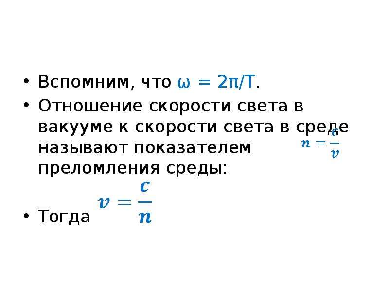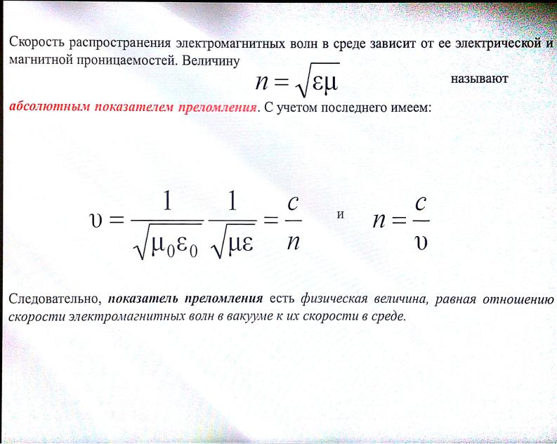 Скорость и показатель преломления