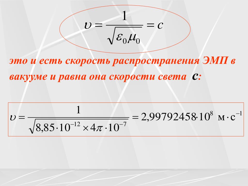 В середине -го -го века физик Джеймс Клерк Максвелл представил миру свои знаменитые уравнения Максвелла. Эти уравнения послужили способом измерения электрических и магнитных полей в вакууме. Используя свои уравнения, Максвелл попытался рассчитать скорость безмассовых электромагнитных излучений, распространяющихся в пространстве.