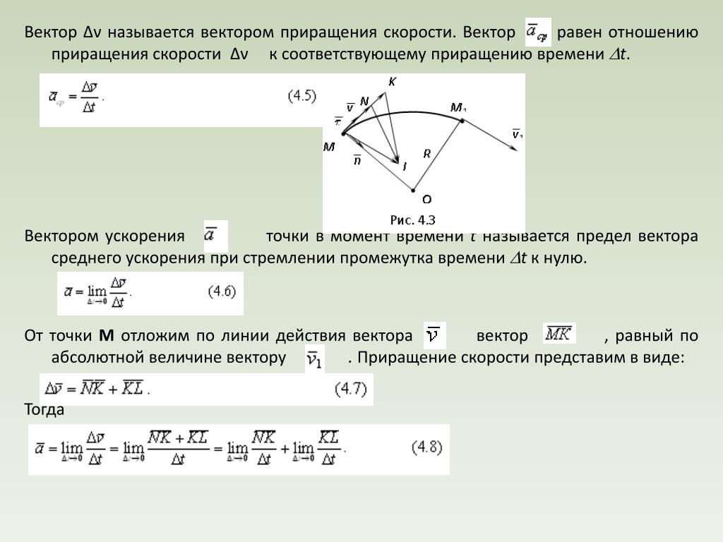 Векторы ускорения и скорости. Ускорение и сила. Направления тангенциального и нормального ускорений