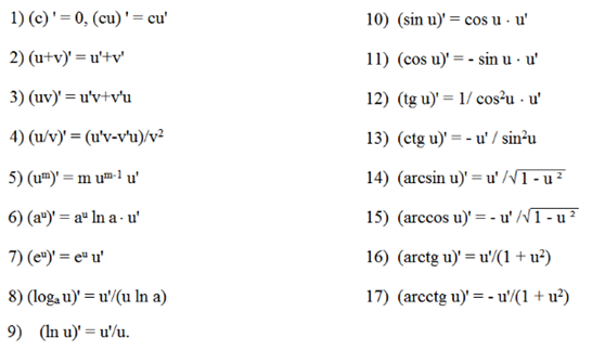 Понятие производной. Правила и формулы дифференцирования функции. Дифференциал