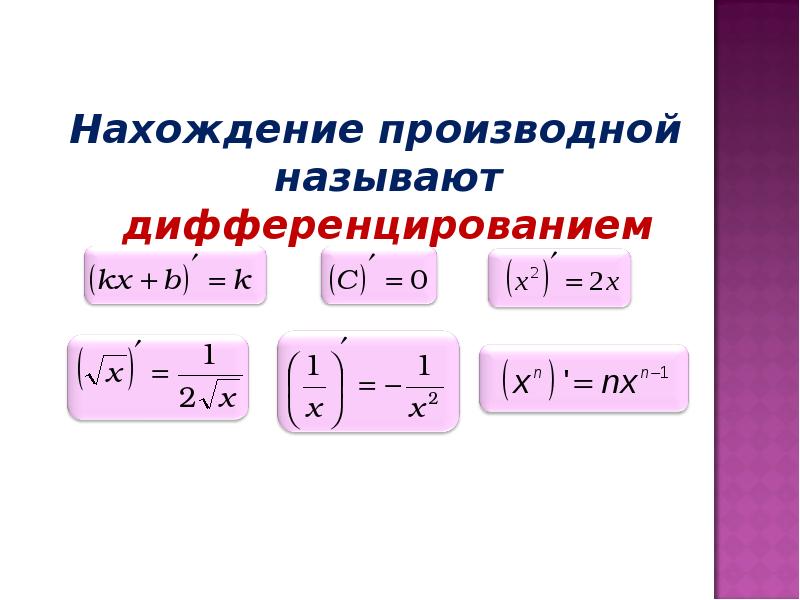Вычисление производной называется дифференцированием. Обратный процесс – интегрированием.