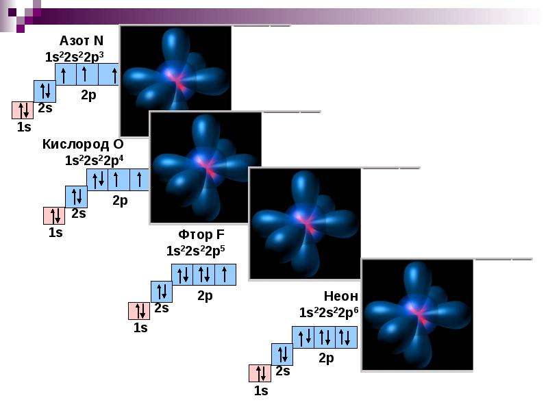 Каждая из орбиталей имеет различную форму.Орбитали s сферические, а орбитали p – гантели. сформированный.