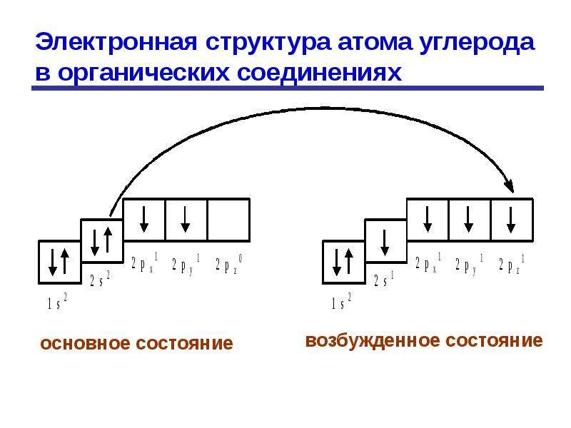 НИИ электроны с Зр- и Зх-подуровней переходят на Зй-подуровень (на схеме показано стрелками).