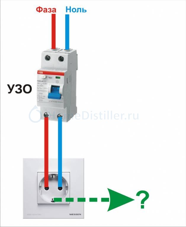 Совет! При отсутствии в схеме УЗО его допускается установить временно, снаружи электрощита. Подключение при этом можно выполнить при помощи отрезков гибкого провода.