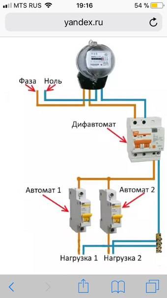 • Наличие в схеме электропроводки УЗО. Использование вместо нулевого проводника заземляющего при подключении электроприборов, освещения и розеток приводит к появлению тока утечки, нарушению равенства токов в нейтрали и фазном проводе и срабатыванию дифзащиты