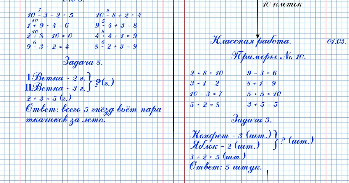 - Вынесенные учителем на поля красной пастой образцы написания цифр нужно прописывать в домашней работе, добиваясь каллиграфического написания.